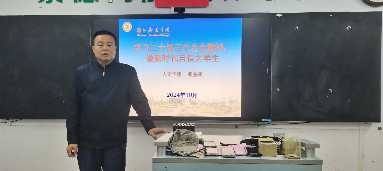本网tyc41183太阳成集团讯: 10月29日晚,tyc41183太阳成集团党总支书记张金帮走进2023级数控贯通1班,开展《学习二十届三中全会,做新时代自信大学生》的百场讲堂。