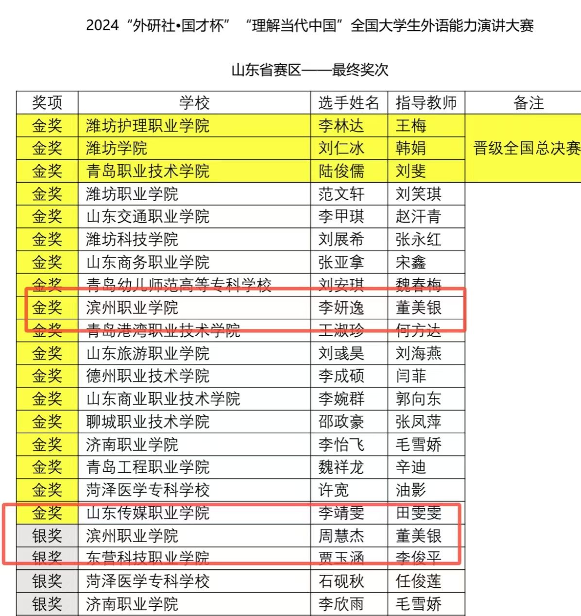 山东赛区金奖