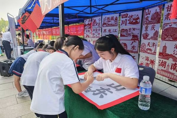我校师生紧扣中华优秀传统文化和语言文字工作两大核心,精心策划规范汉字剪纸艺术作品,现场参加全省语言文字工作成果展示。每件作品与中国红基调的宣传海报相呼应,以“规范汉字”的要求用标准楷书书写地域名称并裁剪拼贴,同时巧妙融入各地标志性文化符号,形成“一字一景、一地一韵”的独特视觉艺术效果,力求每件作品既能展现汉字之美,又能传递深厚的地域文化内涵,铸牢中华民族共同体意识。活动现场,我校师生代表现场进行地名剪纸创作并全程使用标准普通话与在场领导嘉宾交流互动,展现了我校师生良好的精神风貌,有效展示了近年来我校语言文字工作成果,营造了师生“说普通话、写规范字”的良好氛围,进一步增强了我校师生中华民族共同体意识,为传承中华优秀传统文化奠定了坚实基础。