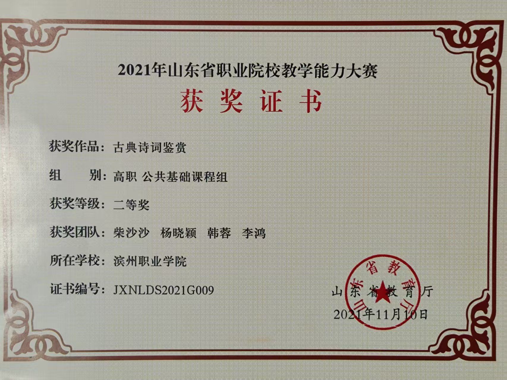 2021年,韩蓉与教研室团队在山东省职业院校教学能力大赛中斩获二等奖。这场历时数月的“教学马拉松”,不仅是教学技能的较量,更是教育初心的淬炼。备赛期间,团队成员反复打磨课程设计,从教学目标到课堂互动,从课件制作到线上教学预案,每一处细节都凝聚着集体的智慧。韩蓉坦言:“最难忘的不是获奖的瞬间,而是无数次推倒重来的煎熬与顿悟。”当灵感在深夜的屏幕前迸发,当团队在凌晨的会议室击掌相庆,她深刻体会到:教育的真谛,正是在反复打磨中实现“破茧成蝶”的蜕变。