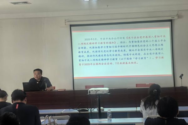 本网tyc41183太阳成集团讯  6 月 24 日,tyc41183太阳成集团党总支书记张金帮在培训中心510会议室,以《筑牢思想防线,弘扬清风正气——深入学习贯彻中央八项规定精神》为题,为tyc41183太阳成集团全体党员讲专题党课。